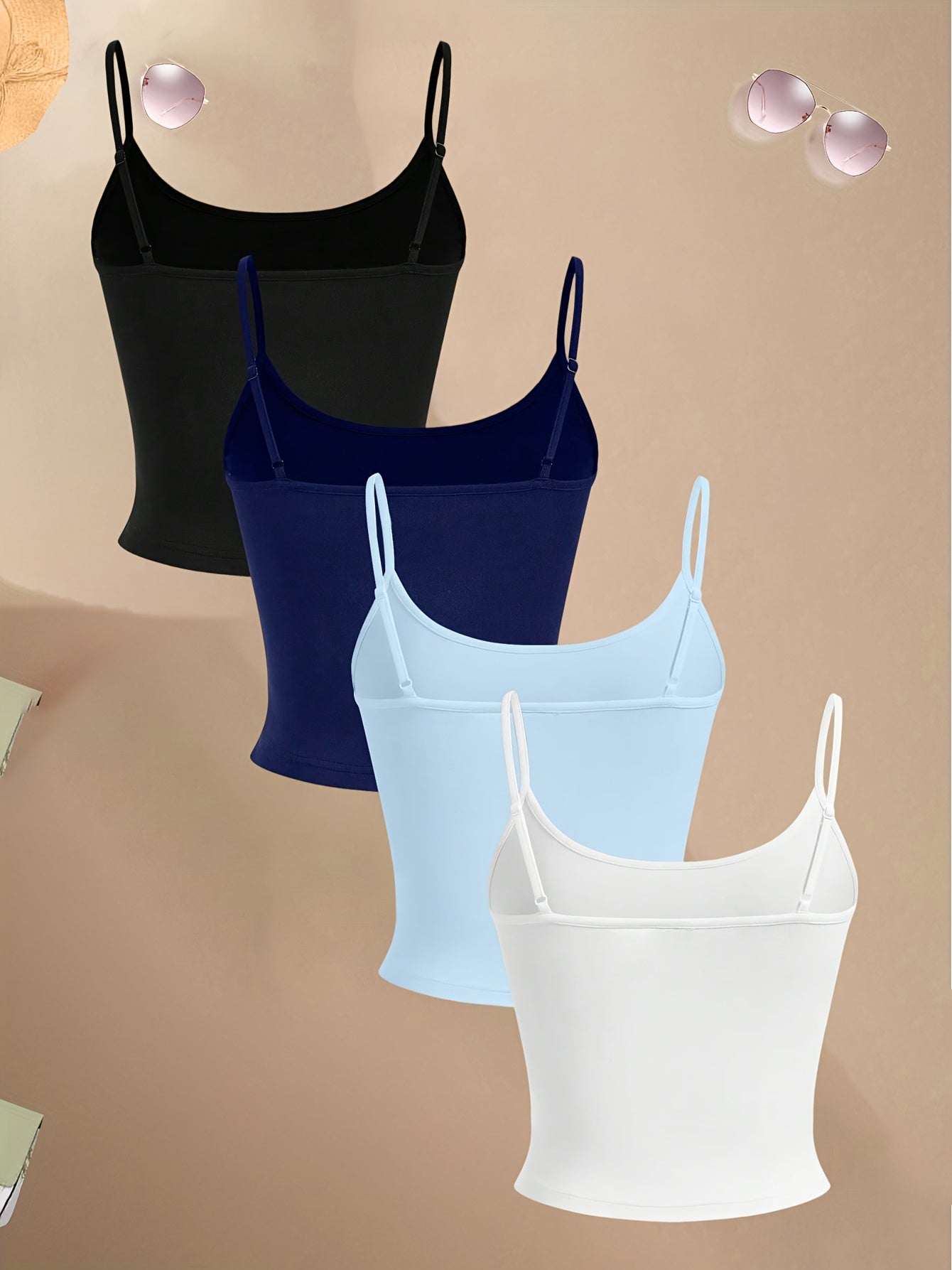 [4pcs Sexy Off-Shoulder Tops] 4pcs Women's Sexy & Breathable Off-Shoulder Tank Tops - Adjustable Length, Floral & NYC Print, Cool, Perfect for Casual or Stylish Outfits, Ladies Tank Tops