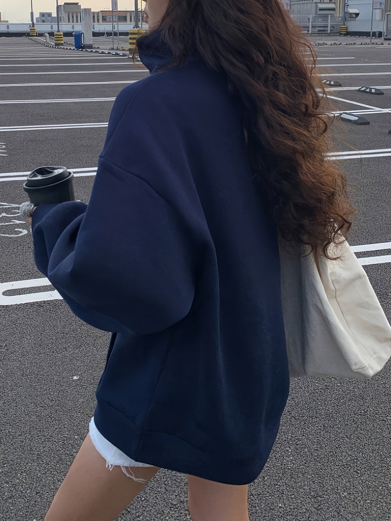 Women'S Cozy Fleece-Lined Sweatshirt with "I Love Myself" Graphic - Long Sleeve, Button-Up Front, Casual Fall/Winter Wear, Navy Blue with White Lettering, Casual Wear | Cozy Fleece Sweatshirt | Construction, Sweater Hoodie