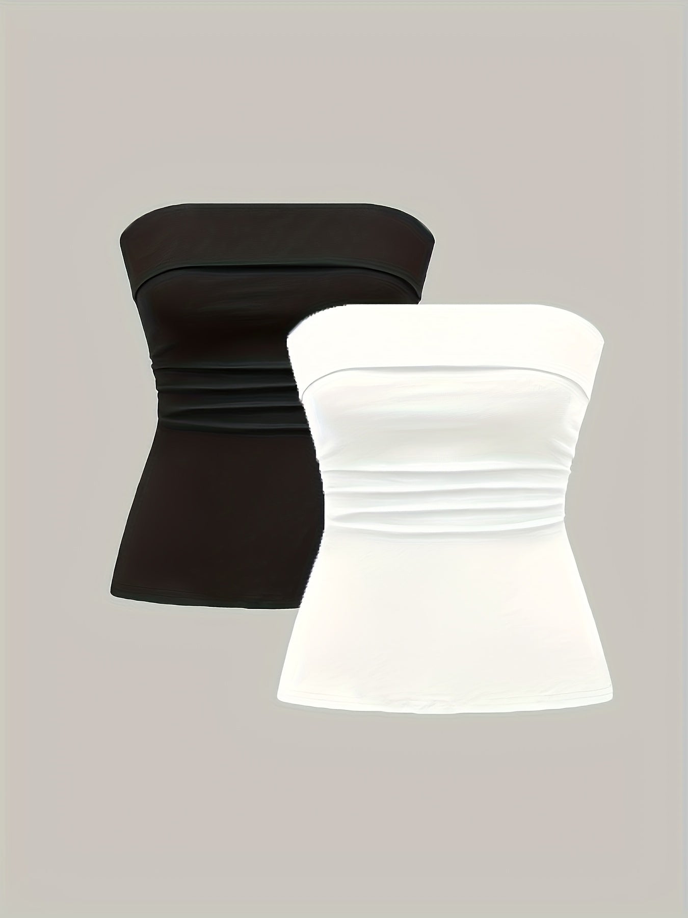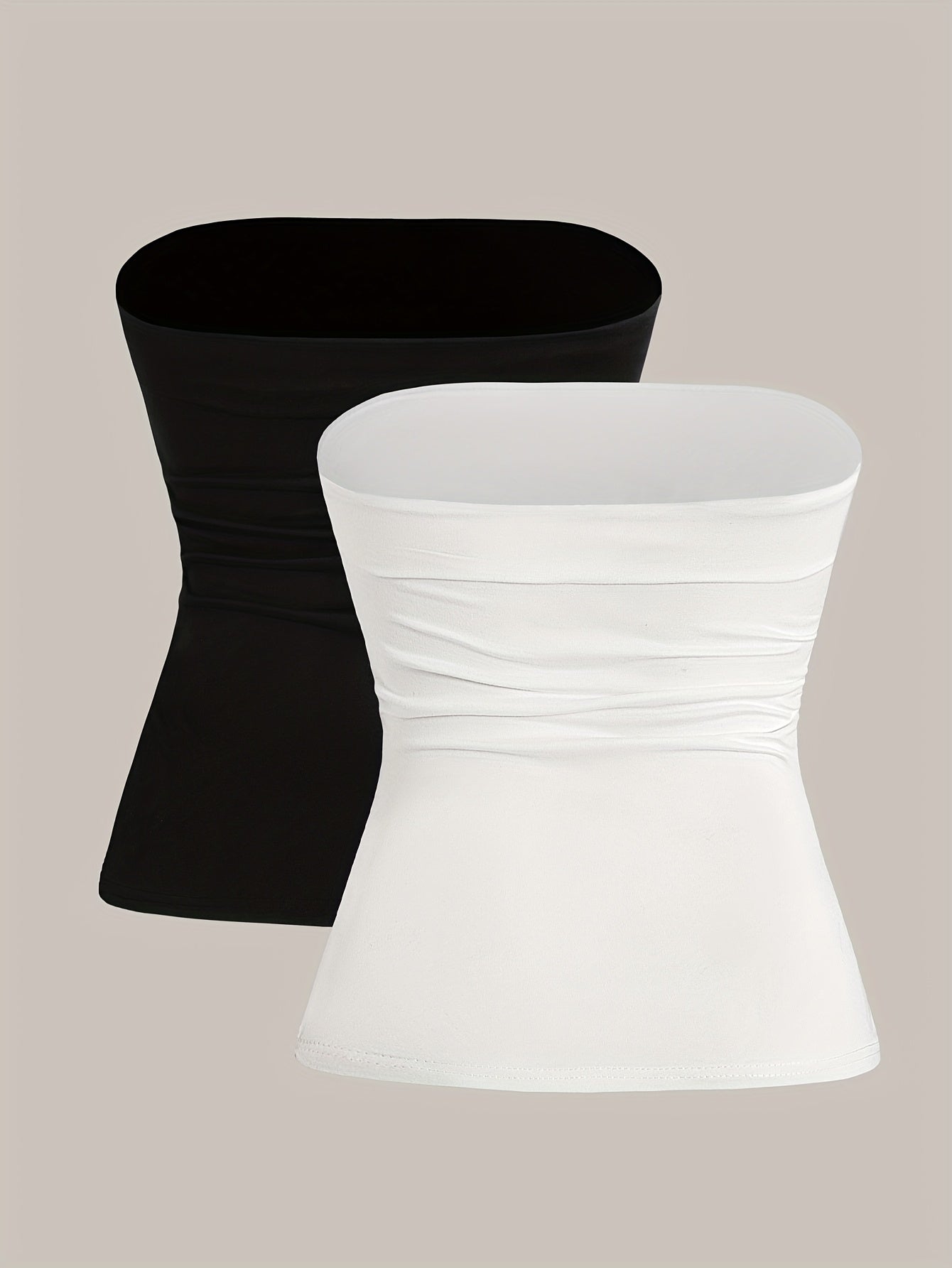 Women'S Sexy Off-Shoulder Tube Top - Solid Color Stretchy Crop Top for Casual & Formal Wear, All-Season Versatile Sleeveless Blouse, Crop Top Blouse