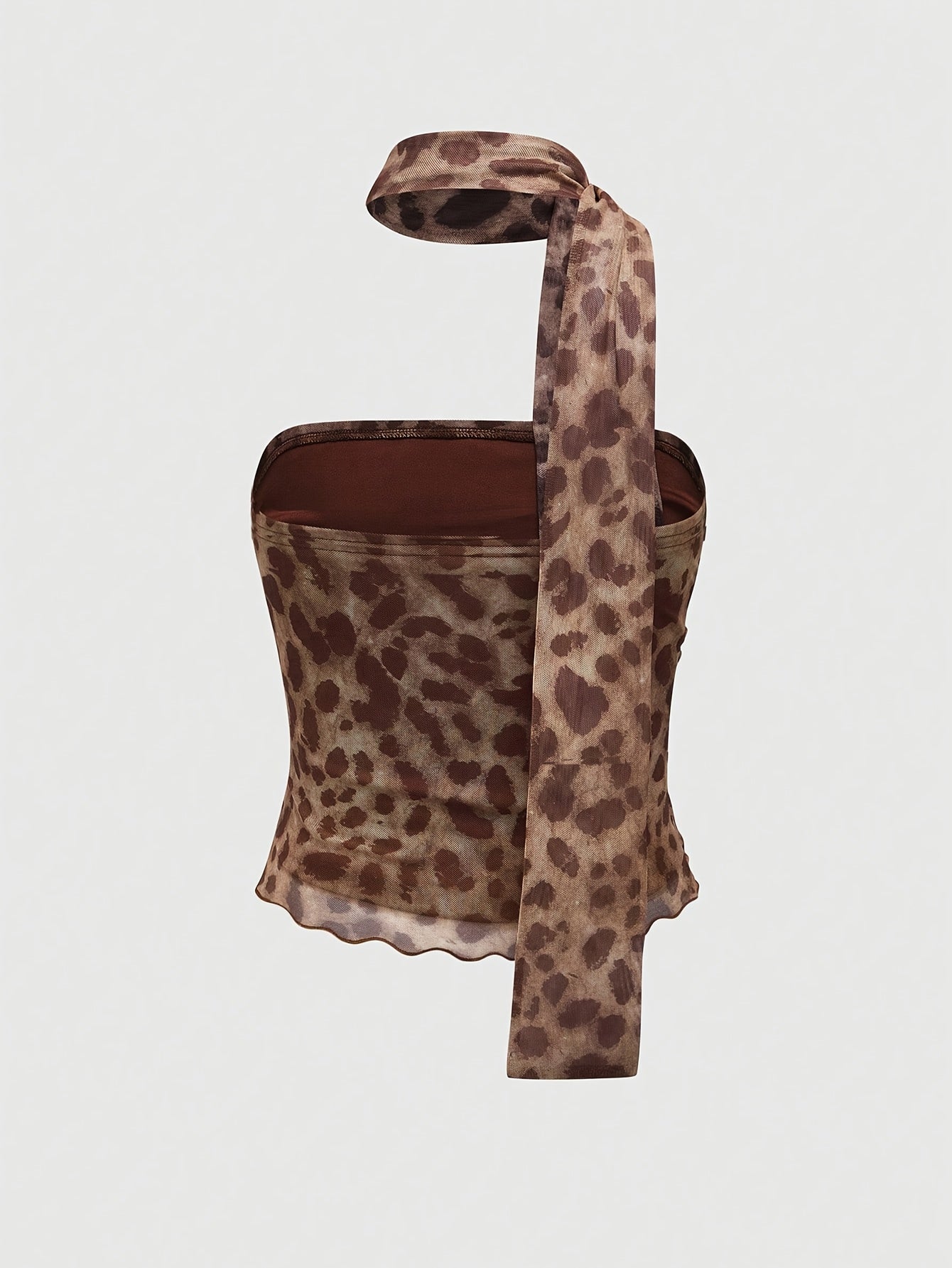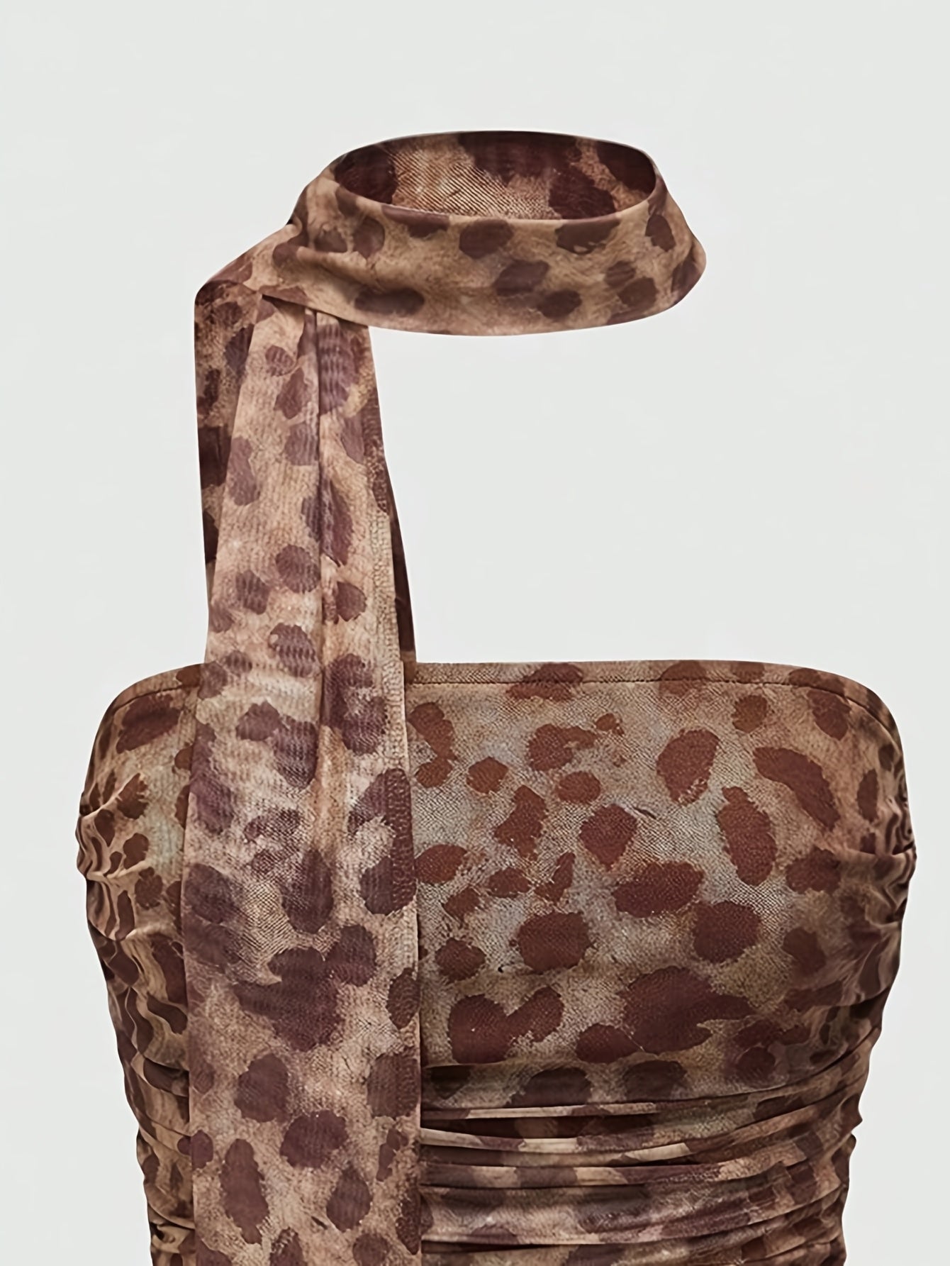 Women'S Y2K Elegant Peach Leopard Print Ruched Top - Sleeveless, Stretchy Polyester Blend, Knee-Length with Tie-Front Detail, Perfect for Spring/Summer/Fal